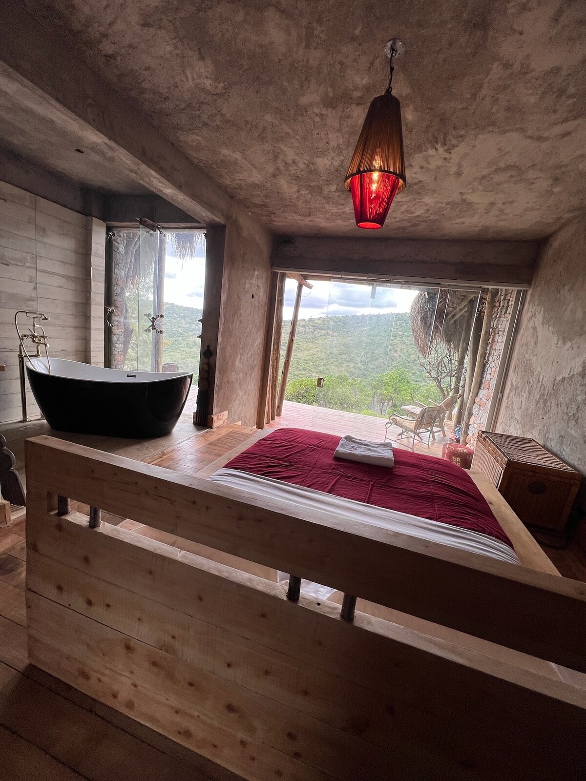Nestled with a forest backdrop, Kitanda Msituni is a luxurious 5-bedroom retreat blending nature and comfort. Enjoy ensuite bedrooms, an indoor concrete bathtub, and an outdoor shower. Dine with an outdoor gas grill for the perfect barbecue, or sip tea on the 5-acre tea plantation, surrounded by peace and privacy. Take a scenic game drive just an hour away, unwind by the small waterfall, or relax around the fire pit—a dreamy, peaceful haven perfect for escaping the everyday.