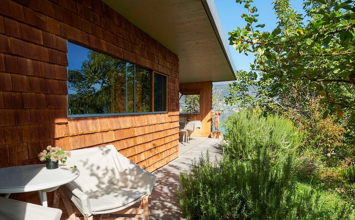 Unsere lichtdurchflutete, moderne Unterkunft mit bodentiefen Glasfronten bietet einen spektakulären Blick auf den See. Genießen Sie den direkten Zugang zum Wasser und lassen Sie sich von der ruhigen Atmosphäre und unvergesslichen Sonnenuntergängen. verzaubern. Die kreative, bohemian-moderne Einrichtung vereint Raum, Gemütlichkeit und Stil. Ob für einen romantischen Kurzurlaub oder eine kreative Auszeit – hier finden Sie den perfekten Rückzugsort.