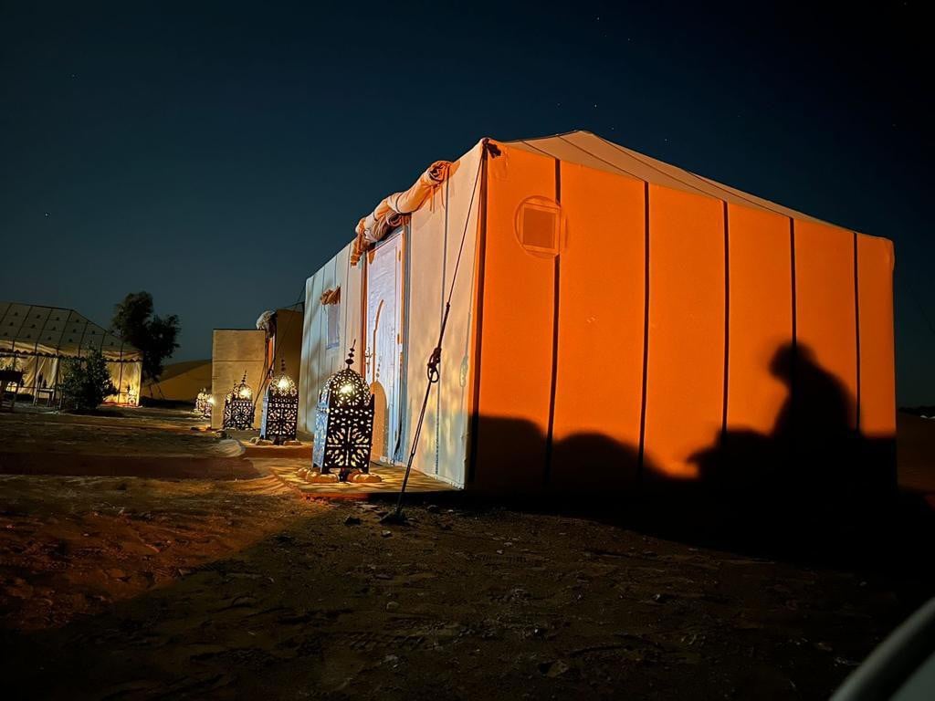 This luxurious desert camp is easily accessible by car. Despite its proximity to the village, it's situated right in the middle of the sand dunes, offering a panoramic view of some of the largest dunes. As locals, we can arrange activities and accommodate any additional requests. We provide private tents, each with its own bathroom, toilet, and air conditioning for both cooling and heating. We also offer dinner upon request. Everyone is welcome in the desert.