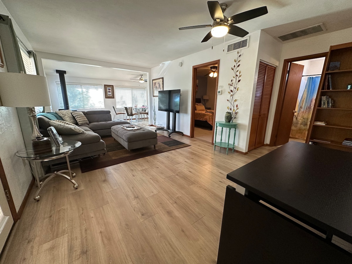Minutes from ARIZONA ATHLETIC GROUNDS and MESA GATEWAY AIRPORT! Nestled in Mesa's picturesque heart, our guest suite is ideal for travelers attending events at the nearby Arizona Athletic Grounds Stadium. Located minutes from the 202, enjoy seamless access to the greater Phoenix area. Experience full privacy with a private entry and modern furnishings, including a 55" SMART TV. Perfect for relaxation and convenience. Book your stay today!