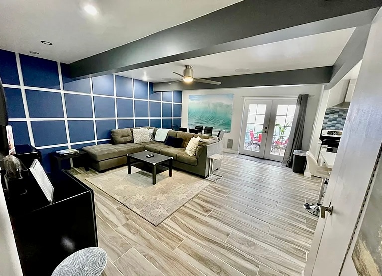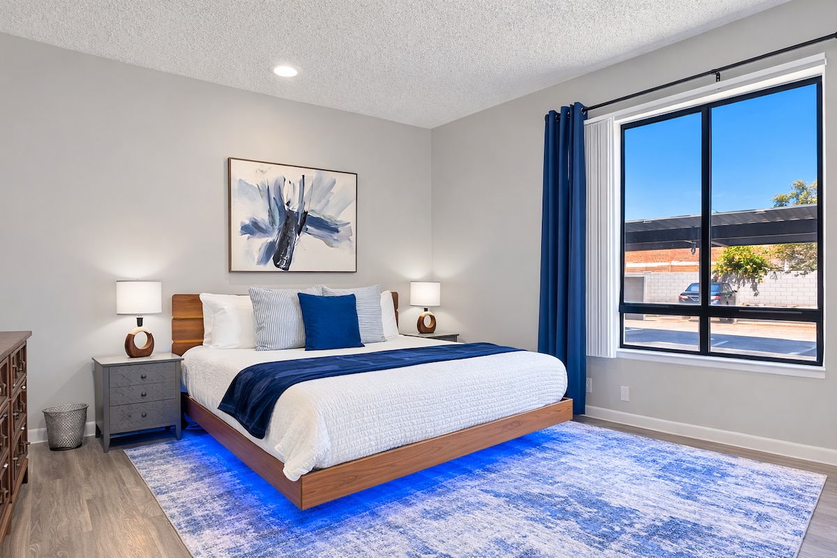 Enjoy your time at this one bedroom modern condo with vaulted ceilings, features like a color changing fireplace & private patio. The kitchen appliances are all new and we included an air-fryer and the fridge has filtered water & ice. The bed is a Queen size Dream Cloud and there is a queen airbed for guests. Yes there is a washer & dryer in the unit with all the laundry needs. Your pool is just steps away so we have included pool floats, beach towels, a speaker and a small ice chest for drinks.