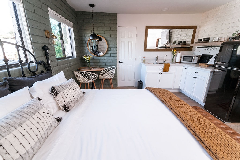"This is the best Vacation Rental I've ever been to" is a common comment. See the reviews! Magical MCM/Boho; Private guest suite addition to the main house with its own entrance, Pool! EV Charger! 510 sf/1 BR King/1 Bath/Queen sleeper sofa, kitchenette, W/D, <1 mile from Downtown Gilbert! Luxuries: Tuft & Needle King mattress, walk-in shower, Air Fryer, Microwave, Keurig Coffee, Work Desk, High Speed WI-FI, TV in LR & BR, huge patio, firepit, grassy lawn & a lovely POOL. Owners on property.