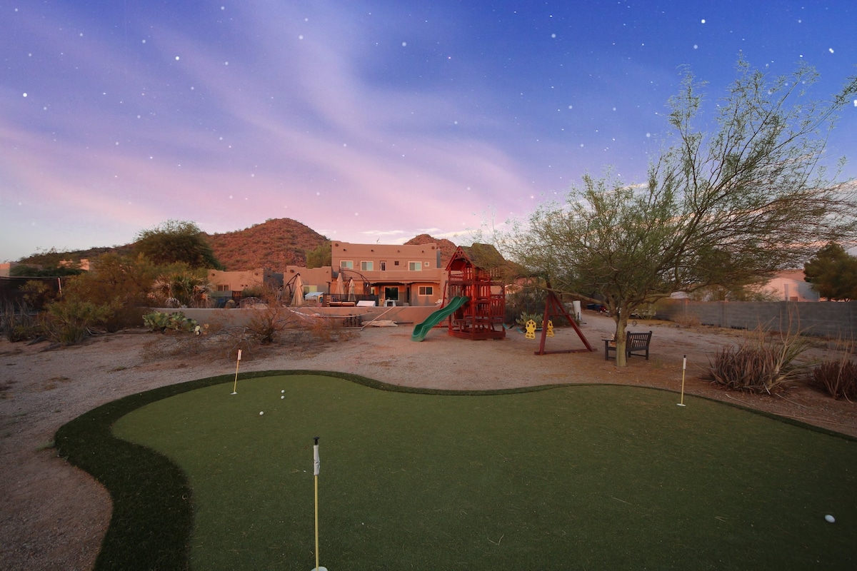 Looking to enjoy the Arizona sunshine? Then this is the home for you! This fully renovated backyard has everything you need to feel like you're at your own private resort! -Heated Pool (No Charge) -Hot Tub -Commercial Grade Patio Misting System -Putting Green -Yard Games -Outdoor Dining Table -Outdoor Smart TV - Fire Table - Chaise Loungers Inside you'll enjoy this beautifully decorated home with a fully stocked and newly remodeled kitchen, two renovated bathrooms, and so much more.