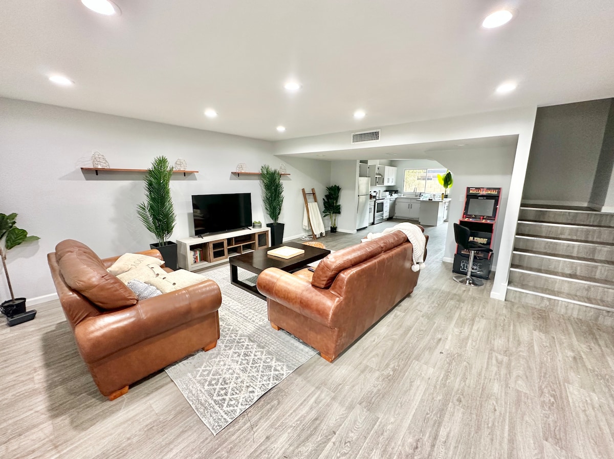 Private Casita. Very cozy and clean. Bedroom: King bed with plush bedding, wall mounted swivel 65 inch smart TV, and walking closet Living room: Couch with pull out with upgraded 5 inch memory foam mattress, wall mounted 70” Roku smart TV. Kitchen: Stainless steel appliances fully loaded. With Reverse osmosis system. Features hot tub, playground for kids , barbecue area for guest only. Secured private gated parking area. NOTE: Hot tub is turned off from June 1st through August 31st.