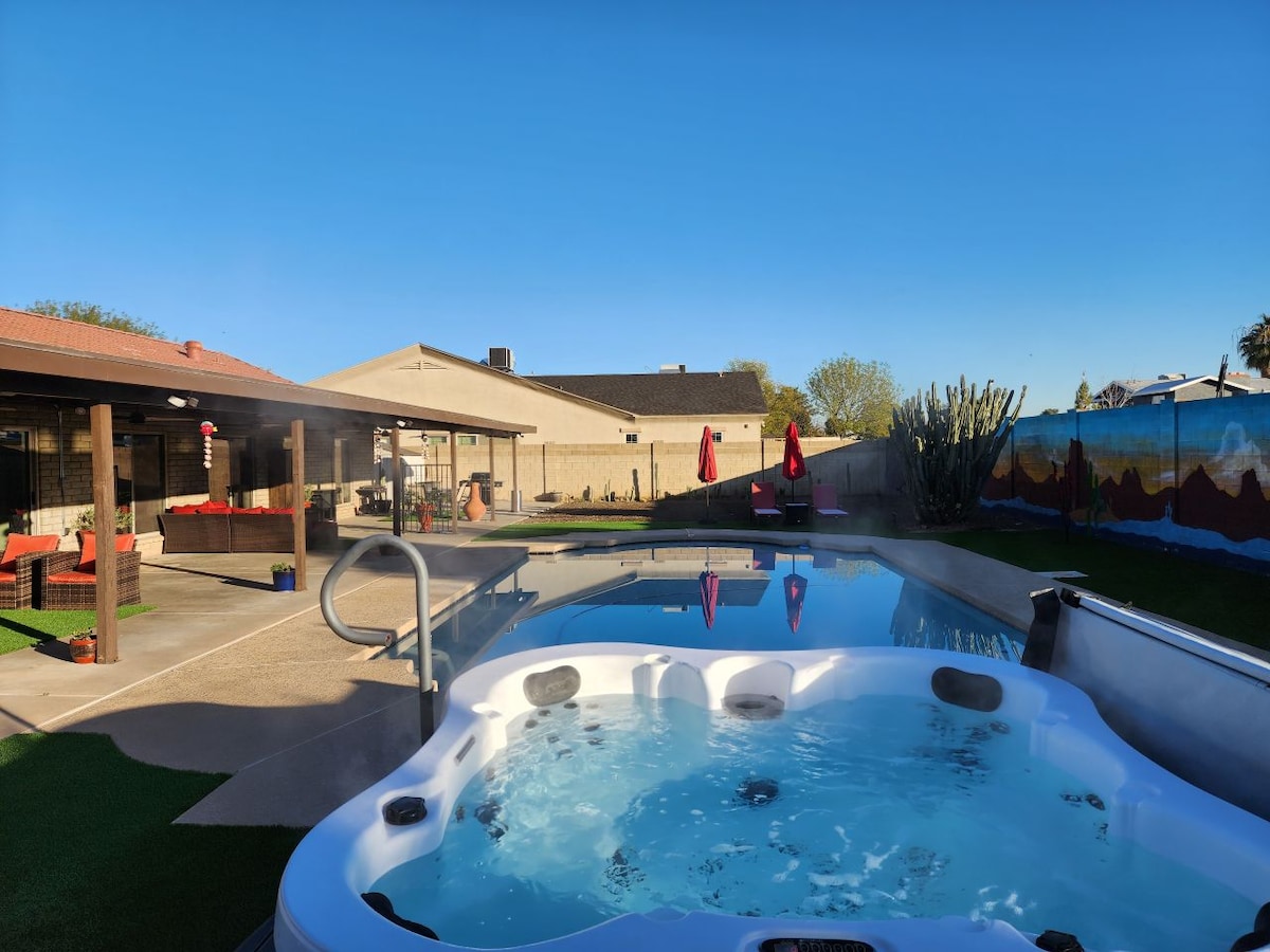 Stay in this 2 bedroom/2 Bath Upscale RV in Town! Close to Stadiums, Freeways and Events! Access to the large Yard, Pool, hot tub (seasonal) , Covered Patio, and Grill. Fully Equipped with everything you need for a comfortable stay. Less than 15 Minutes from: State Farm Cardinals Stadium, Baseball stadiums, Multiple malls, Westgate entertainment district, Hockey Stadium, Multiple Golf Courses, Casino, Top Golf. Less than 30 minutes from: Sky Harbor Airport, Phoenix Raceway, The Phoenix Open