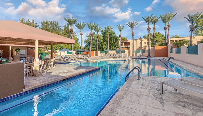 Nestled among the foothills of majestic South Mountain, this resort features its own 18-hole championship golf course designed by renowned architect Gary Panks. After a day on the greens, come back and enjoy an inviting resort community full of amenities and recreation activities. Pictures used are stock photos and may not be exact room. Must be 21 years old to check in.