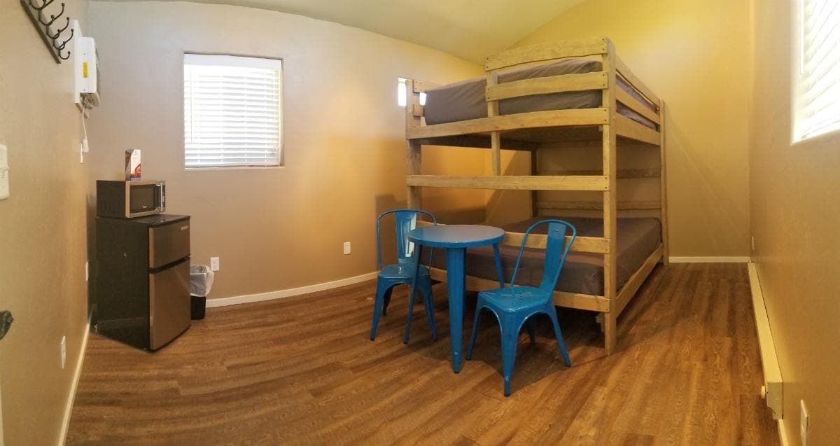 The Solargon is inspired by elements of Asian yurts, Navajo hogons and Native American hidatsa lodges. Combined with passive solar design principles, the solargon is an octagonal structure designed to take full advantage of the sun. The vaulted ceilings and plentiful windows make the solargon bright and inviting. This is a perfect spot for solo travelers or couples looking for a quiet, off the beaten path place to get away from it all.
