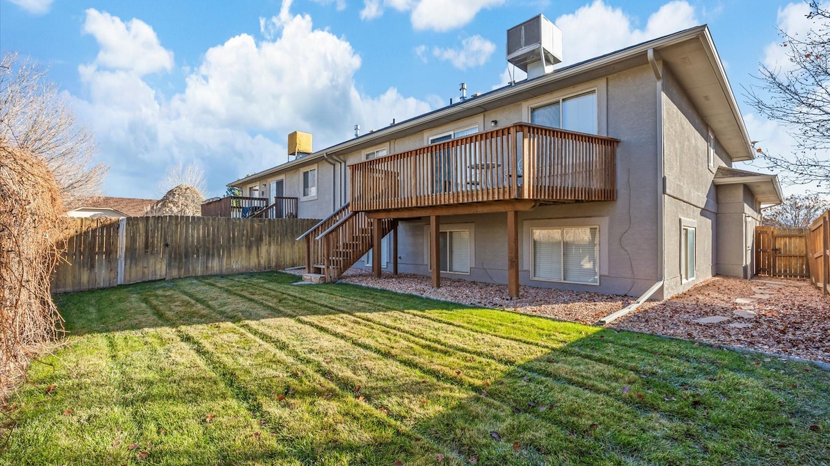 This pet-friendly home is ideal for families or groups, offering 4 comfortable bedrooms, two bathrooms, a fully fenced yard for kids and dogs to enjoy, plus 2 kitchens! Nestled in a family-friendly neighborhood, you’re just 3 miles from downtown Grand Junction and only 10 minutes from Palisade and Fruita. There is comfortable sleeping arrangements: Bedroom 1, Bedroom 2, Bedroom 3, and Bedroom 4 each offer a queen bed, the living room includes a futon for additional guests, and a crib is available for families traveling with little ones. Outdoor space includes a deck and a fenced-in yard, plus two bicycles for guest use and a patio with furniture for relaxing evenings. Inside, you’ll find two TVs, a laptop-friendly workspace, two dining areas, board games, books, ceiling fans, and a well-equipped kitchen with a fridge, stove, dishwasher, cooking basics, a drip and pod coffee maker, toaster, microwave, dishware, flatware, knife set, extra counter space. General amenities include free WiFi, central heating, an evaporative cooler, a washer-dryer, complimentary toiletries, linens and towels, trash bags and paper towels, hangers, a hair dryer, laundry detergent, an iron and board, and keyless entry. Baby gates, crib and high chair are provided for families with young children. It is the guest's responsibility to secure the stairs as needed. Please note this home has an Evaporative Cooler & Fans for warmer months. The property is one portion of the duplex, with stairs at the entry; two bedrooms and one bathroom are on the top floor. There are two bedroom and one.bath on the lower level. Parking includes a two-vehicle driveway and one-vehicle garage space, with no overnight street parking allowed. Whether you’re planning hikes in Colorado National Monument, a day of fishing nearby, or simply exploring the vibrant local scene, this townhome offers a comfortable, convenient home base for your Colorado getaway.