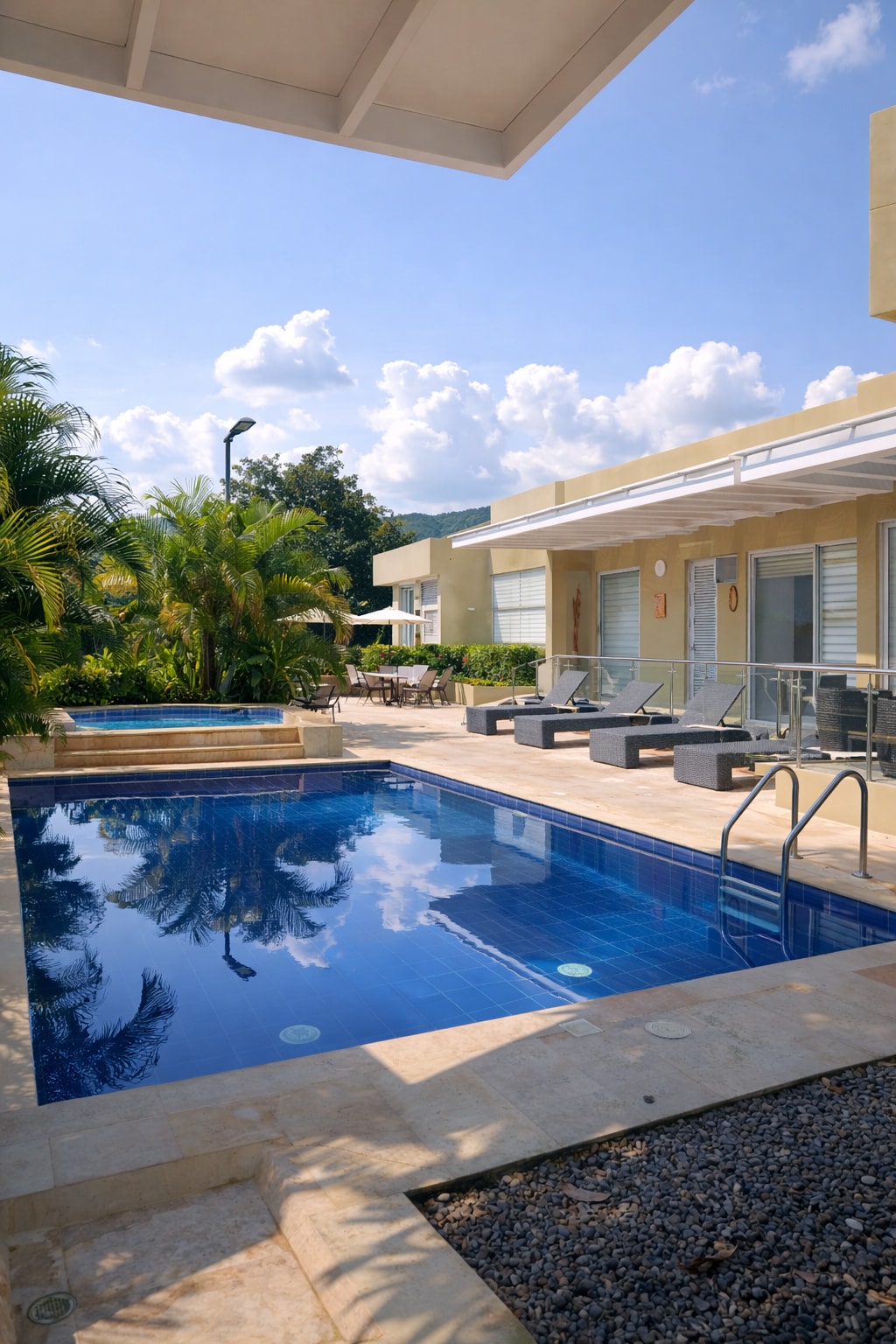 Halfway between Bogotá and the warm light of Melgar, there’s a chill hideaway where nature and good design come together. A modern, private spot built for real rest. Spend your days by the saltwater pool, grill something outside, or kick back for movie nights with an awesome sound system. Starlink keeps you fast and online, even when everything around you tells you to slow down. Perfect for couples, families, or anyone who just wants to unplug — without giving up the good stuff.