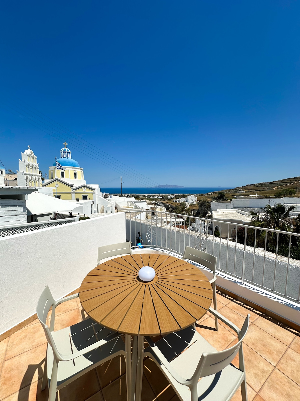 This luxury villa has the best location and feature specious terraces with famous view of Caldera and Aegean sea .Roof top terrace have heated Jacuzzi and comfortable sun-lounges.There is outdoor furniture next to Jacuzzi where you can enjoy breakfast and dinner with unforgettable view . Daily breakfast and cleaning make your stay comfortable .Each bedroom have private bathroom . In a walking distance you will find restaurants,bars, museums and supermarkets.Food delivery available.Free wi-fi