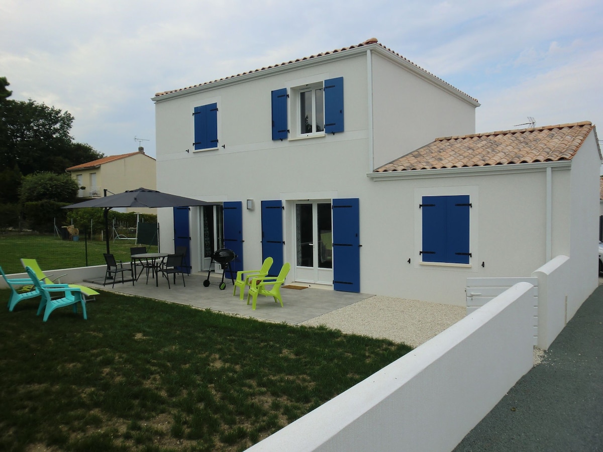 maison avec terrain entièrement clôturé(parking 2 véhicules) Cuisine:bouilloire, grille-pain,four, micro-onde, cafetière, lave-vaisselle et lave linge .Équipement enfant: lit parapluie, chaise haute, barbecue, plancha, table, chaises, terrasse abritée. A 2 pas, supermarché, boulangerie, boucherie/charcuterie , marchés. Le port, les plages et les grottes troglodytes à 1km. À proximité le village deTalmont, Saint-Georges de Didonne , Royan. Piste piétonnière et cyclable à 50m.