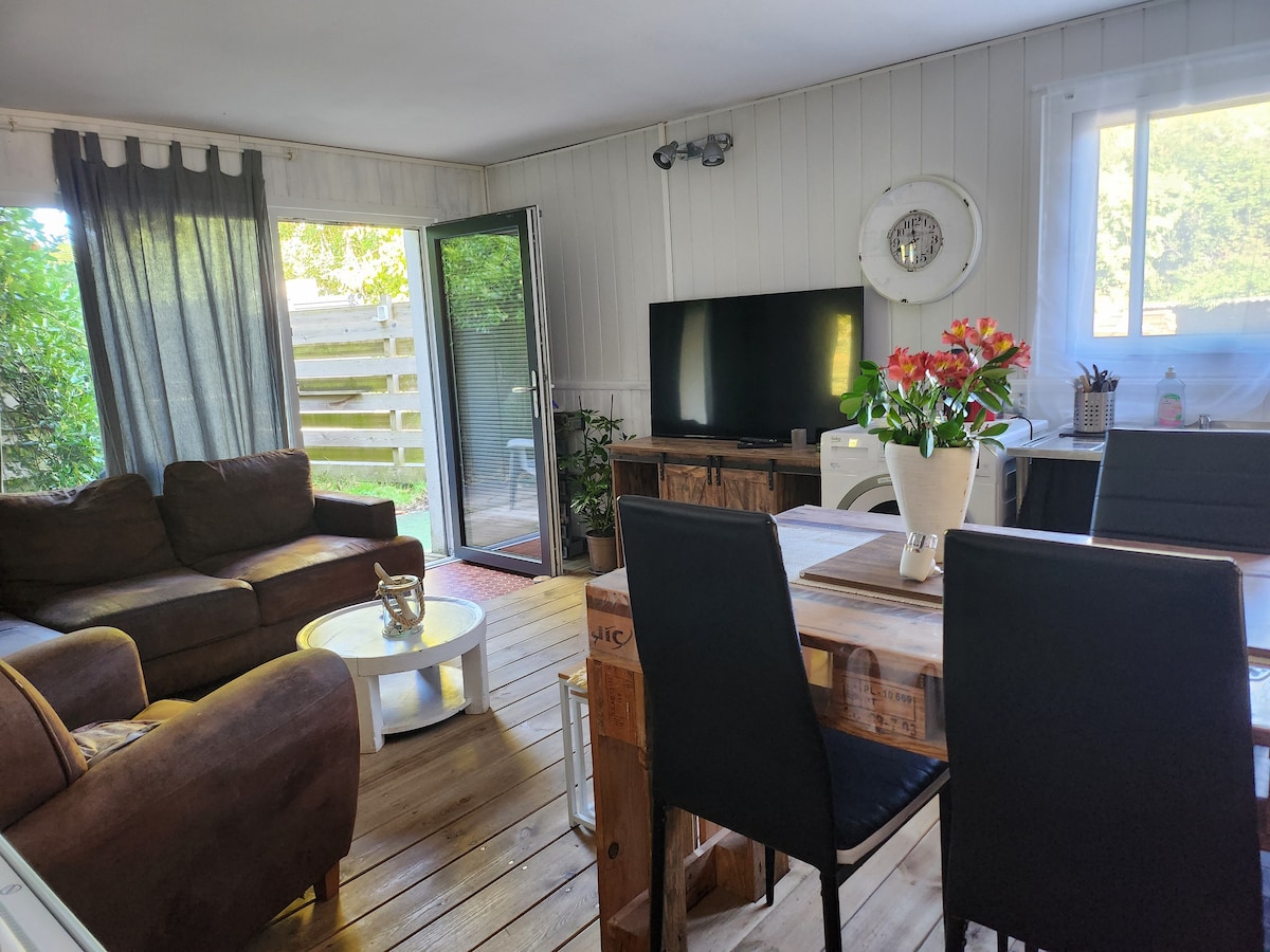 Maisonnette entièrement rénovée au printemps 2023 dans un quartier calme à 80m de la plage de Nauzan. Bénéficiant d'un design moderne et chaleureux, cette maisonnette permet d'accueillir dans les conditions idéales un couple; elle permet également d'accueillir une famille avec deux enfants dans de bonnes conditions.