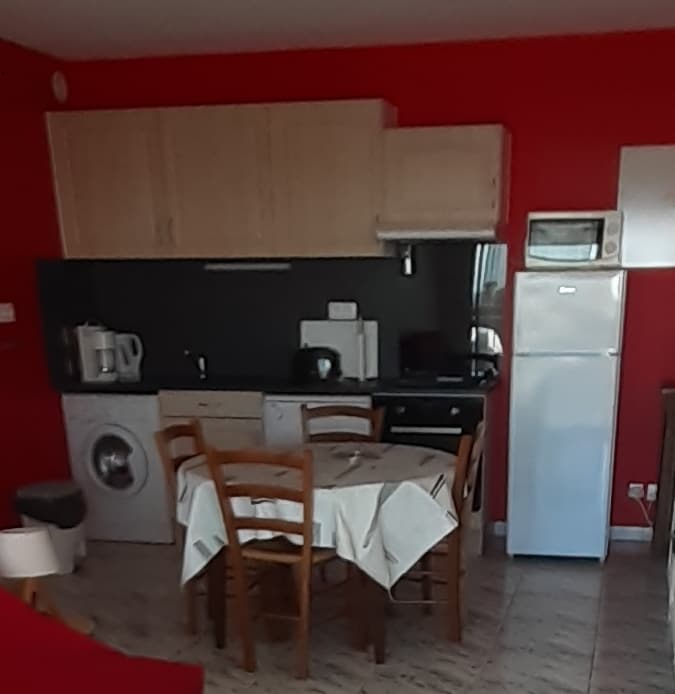 Studio of 19m² located on the garden level of a private villa. It has its own independent entrance, a private terrace facing south, and access to the heated swimming pool from May 1st to September 15th. It includes a fully equipped kitchen, a convertible bed (160x200) with a slatted base; a 17 cm mattress, and a bathroom with a shower, bathtub, electric towel dryer, and toilet. A path will lead you through the dune directly to the ocean in 2 minutes. The city center is a 7-minute walk away.