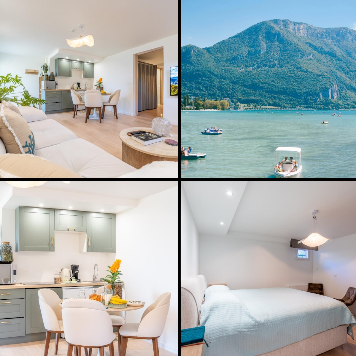 Charmant T2 neuf à Poisy, cosy et chaleureux. Entièrement rénové en 2025, il dispose d’une chambre confortable, d’un salon-cuisine moderne avec électroménager et TV neufs, ainsi qu’une salle de bain élégante. Frais l’été et agréable l’hiver, il offre calme et confort. Proche du bus 1 (10 min d’Annecy), avec stationnement facile et une jolie vue sur les montagnes. Nous veillons au bon déroulement de votre séjour. Appartement en rez-de-jardin avec entrée indépendante Très bien situé et lit 180cm