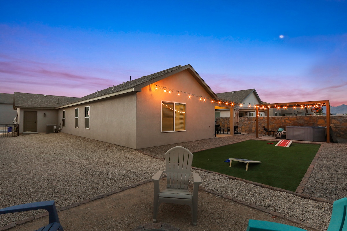 Pecan Palace: luxe 4-BR near NMSU & White Sands. Tucked by pecan farms, this new retreat blends comfort + fun. Perfect for families, work trips, extended stays. ☞ EV charger ☞ Backyard hot tub under pergola ☞ Climate-controlled game lounge with pool table ☞ Foosball ☞ Poker ☞ Pac-Man ☞ Fully equipped chef's kitchen ☞ Plush bedrooms with blackout curtains ☞ Prime spot—1.5 mi to NMSU, Interstate I-10, dining & shopping ☞ Easy access to White Sands NP and downtown