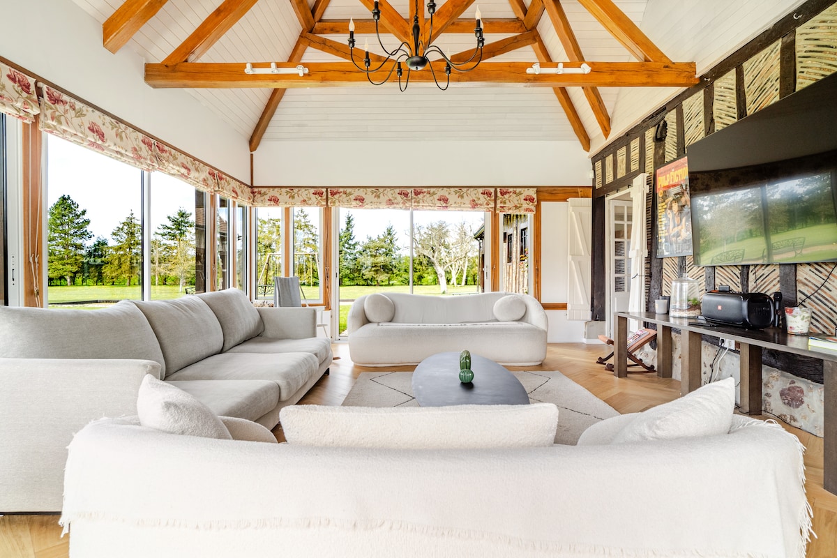 The Gîte des Forières, a charming Norman cottage, offers a spacious refuge and accommodates up to 10 people. Anchored at the gates of Normandy about 130 km from Paris and 80 km from the first beaches, our cottage is located 5 minutes from the famous Château du Champ de Bataille, our house welcomes you for an idyllic stay. Nestled halfway between Paris and Deauville, this haven of peace promises moments of relaxation in the middle of nature, whether one-on-one, with friends or family.