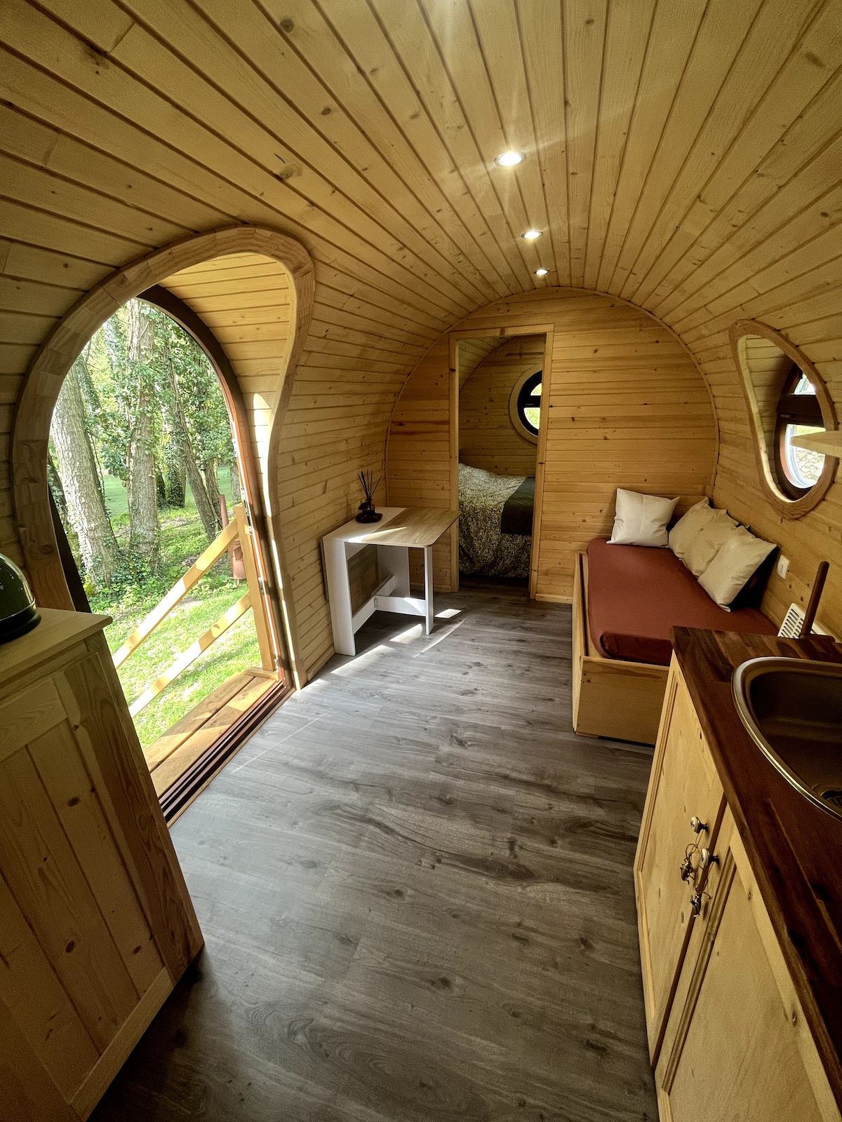 Le bruit de l'eau. Le chant des oiseaux. Immersion en forêt dans un coin de paradis au bord de la rivière avec tout le confort moderne (cuisine, salle de bain, wc). Idéal en famille, entre amoureux ou entre amis. Pour compléter ce cadre idyllique, vous trouverez sur place des jeux d'extérieur (pétanque, badminton), hamac, kayak, barbecue... Possibilité de louer une deuxième roulotte sans cuisine (4 personnes). Un vrai paradis pour une pause hors du temps
