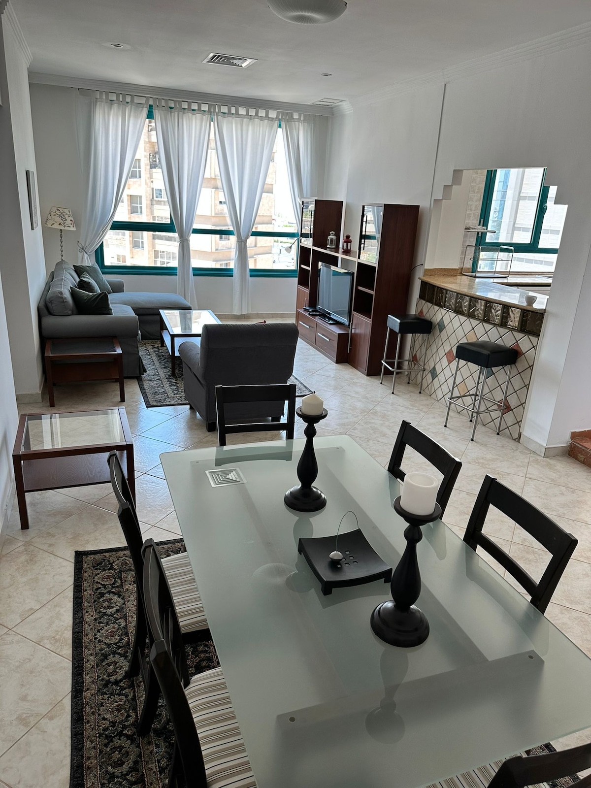 Welcome to your beachfront 3-bed flat on the lively Gulf Road, in touristy Salmiya! Enjoy the perfect blend of luxury & comfort, making it the ideal choice for families looking for a relaxing & memorable stay. Inside, you're greeted by breathtaking sea views filling the airy living room, complete with comfortable seating, a large SMART TV, and a dining area. High-quality bedding and linens with amenities that include exercise equipment, kids' toys & could coffee Bar. Sea views in every room.