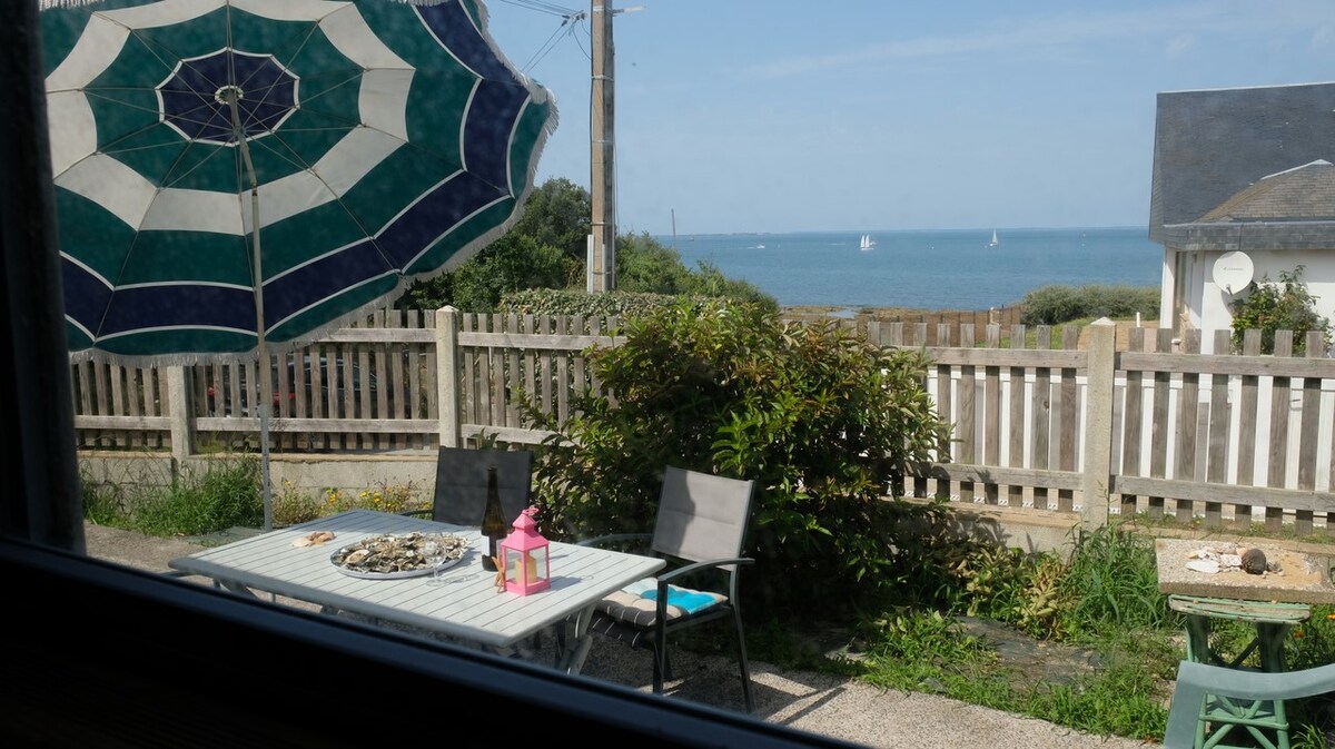 Maison face à la mer, séjour cuisine en véranda, salon. 2 chambres (dont une en mezzanine). 2 WC. 1 salle d'eau. Terrasse, jardin, salon de jardin, barbecue, parking. Equipement pour bébé (lit parapluie, réhausseur, petit pot). Petits animaux admis (panier et gamelles chien sur place). Tarifs de 500 € à 750 € par semaine selon les périodes. Heures d'arrivée : 10h00-14h00. Pour plus de renseignements, merci de nous contacter uniquement par téléphone.