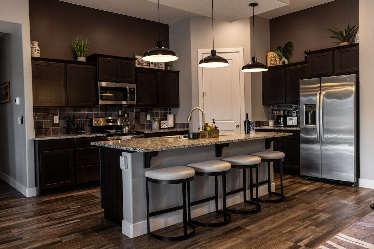 Discover this beautiful, newly constructed home in the Mesquite desert! Relax on the private patio with a hot tub, comfy seating, and a TV. This 3-bedroom, 2-bath gem has a hip vibe and cozy furnishings. Enjoy plush beds, plentiful linens, a fully stocked kitchen, bathrooms, coffee bar, and laundry supplies. Perfect for family and friends seeking high-end accommodations after a day in the Mesquite sun. Click to reserve your stay!