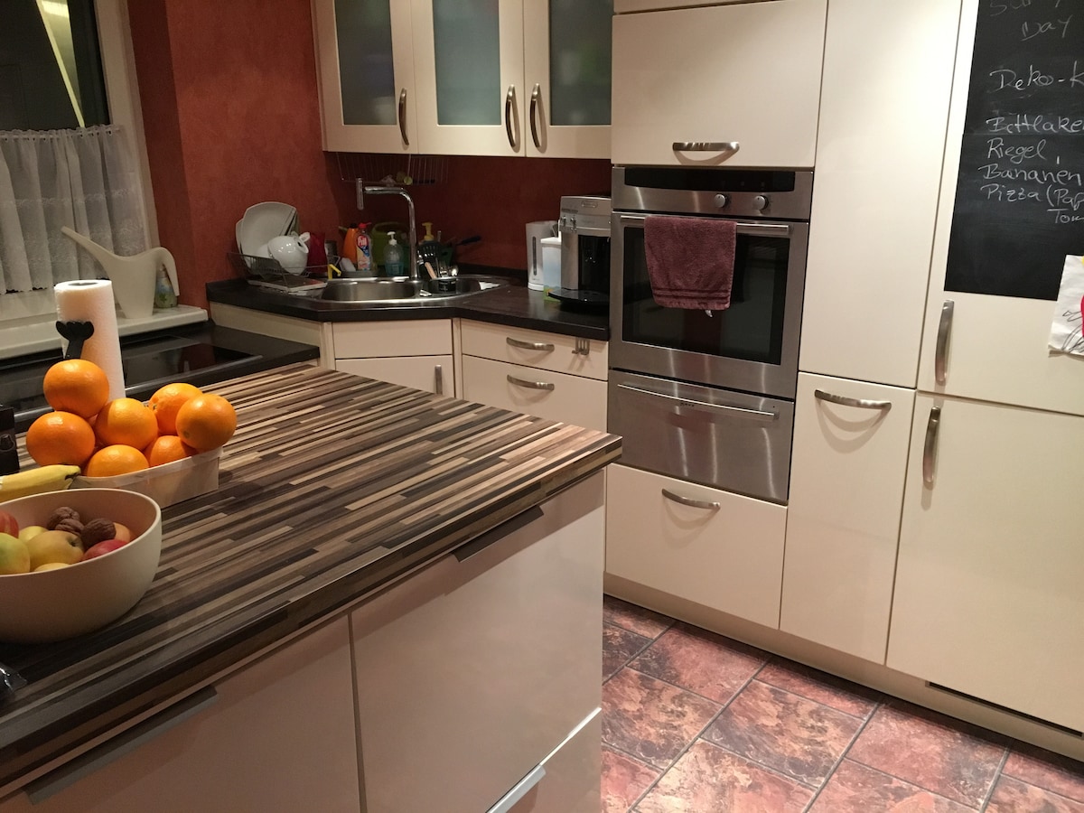 ⭐️“Stop scrolling, you've found the accommodation you're looking for.”⭐️ ✔️High-quality bed linen & towels included ✔️Free washer & dryer ✔️Air conditioning in all rooms ✔️ Free parking right at the house ✔️ Large kitchen with cooking island & 4 bar seats ✔️ Super family- & kids-friendly – children’s paradise ✔️Quick connection to Frankfurt / trade fair (Messe) ✔️ Private courtyard/garden with lockable gate ✔️ Super-fast Wifi & all streaming services ✔️ Big dining table for at least 8 people