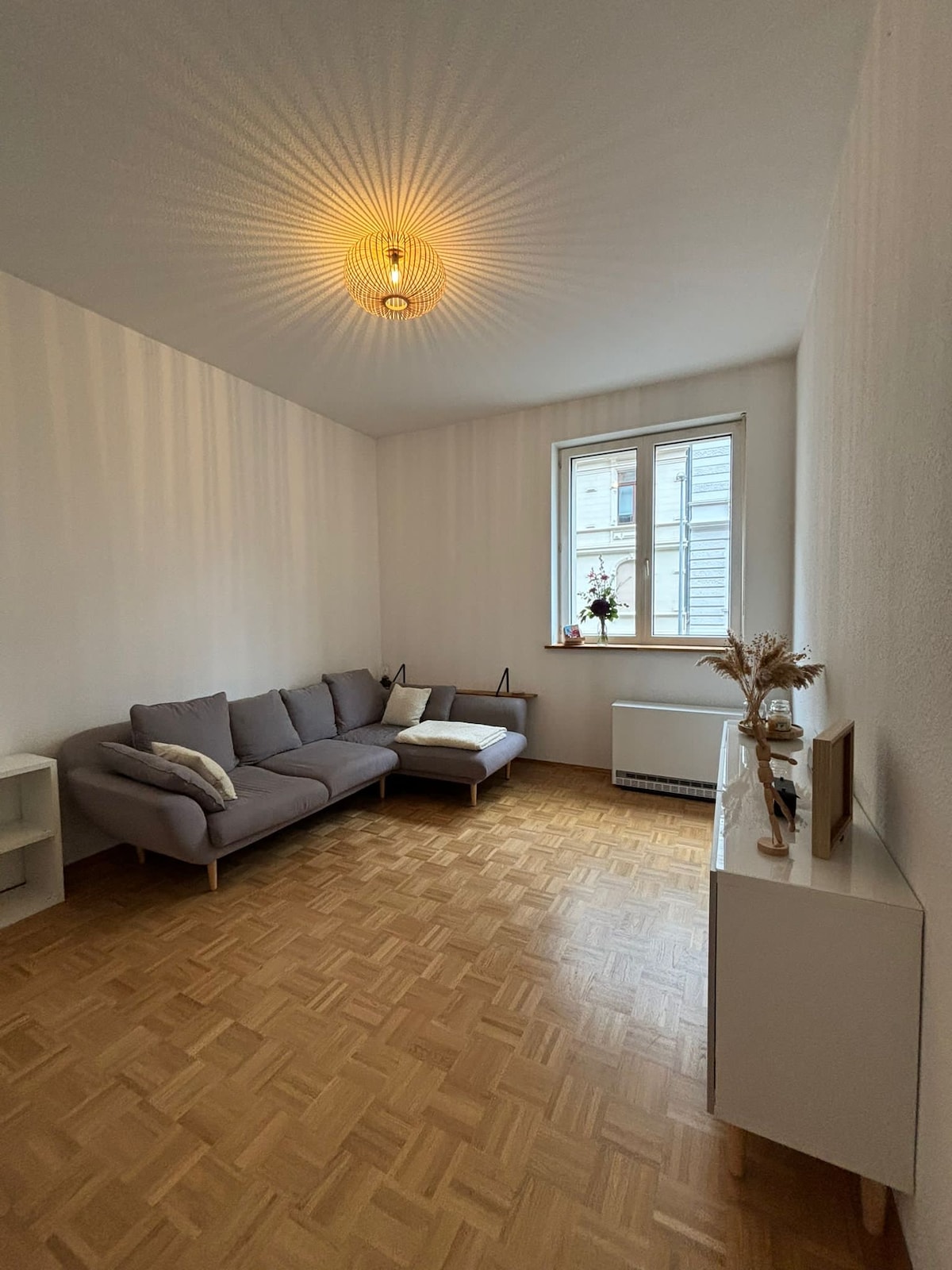 The apartment is located in a historic building from 1890 with high walls and stylish interior. It is situated in a prime location at the hub of the Rhine-Main area. The Mainz-Kastel train station is just a 3-minute walk away, providing quick connections to Frankfurt, Mainz, and Wiesbaden. Despite its central location, the apartment is very quiet and only a 5-minute walk from the green spaces of the Rhine promenade and about 15 minutes from the center of Mainz on foot.