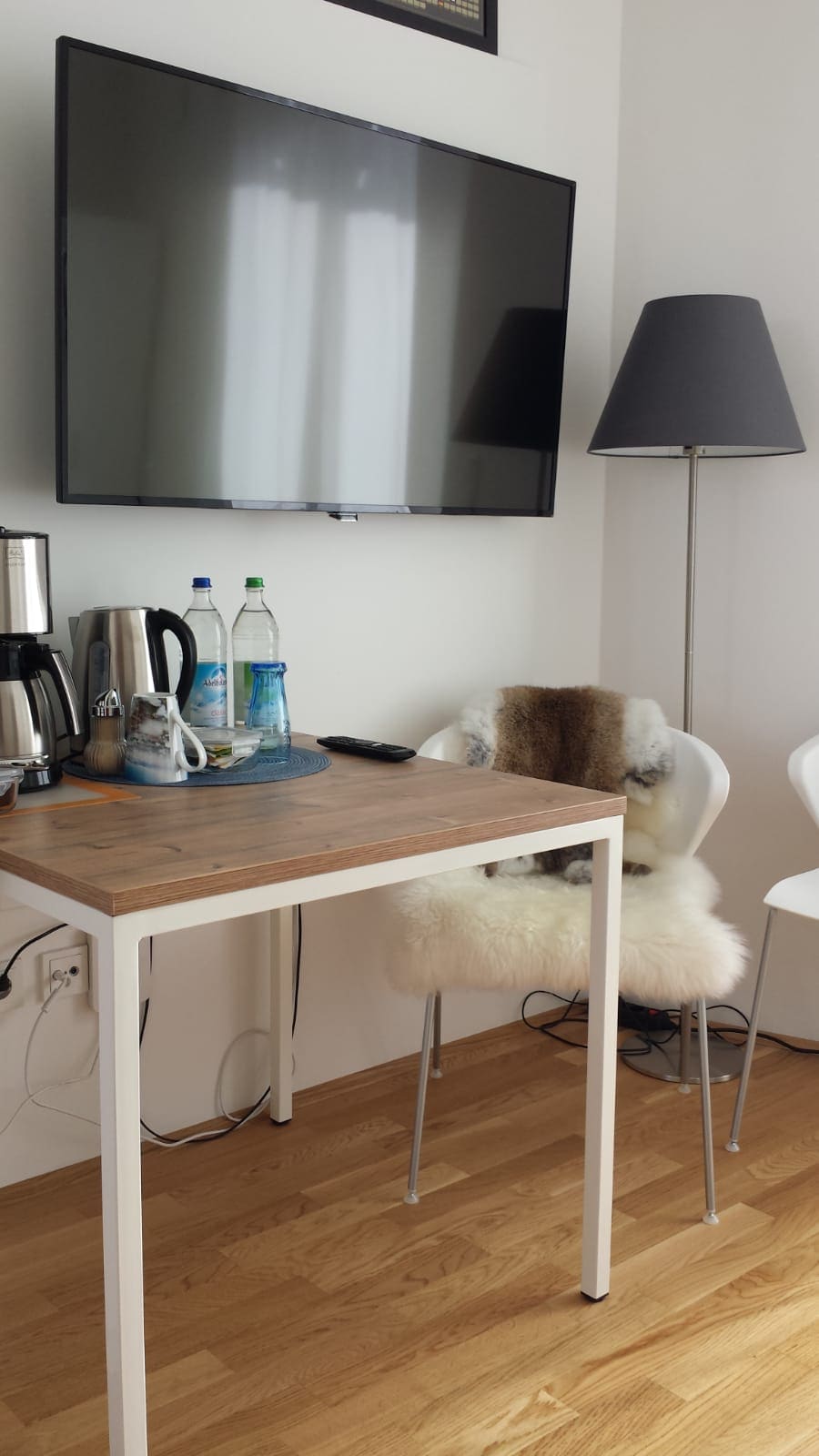 Bei unserem Apartement handelt es sich um einen Neubau aus 2019. Das Apartements ist modern eingerichtet mit Designermöbeln und komplett ausgestattet mit Bett 2x1,30m sowie hochwertigen Einbauschränken und Küchenzeile mit Kühlschrank, Mikrowelle und Glaskeramik-Kochfeld und Flachbildschirm sowie geschützten Loggien / Balkon. Im Mietpreis ist schnelles W-LAN bereits enthalten. In unseren modernen Appartements fühlen Sie sich sofort wohl wie Zuhause.