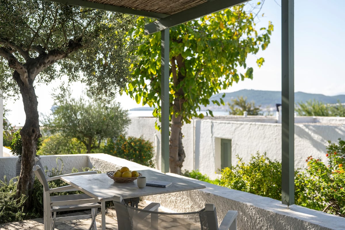 The house is located on top of the sea, with a unique view of the Messinian bay and unforgettable sunsets. It gives you the feeling that you are on board of a ship. You can enjoy the big garden as well as the rest of the space, which is designed to provide comfort and relaxation in your vacation. The sea is a walking distance from the house (3min)