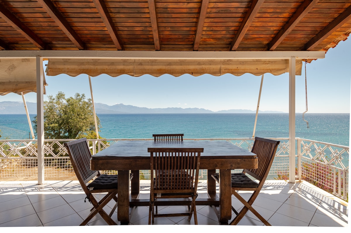 This house is a tribute to our dearest mother Ioanna who was born in this village and her wish was a house by the sea she so adored. It's our family getaway, our childhood paradise of joy,swimming and daydreaming. We are happy to host guests and families who love nature, sea and peace. Enjoy its special vibe and location, amazing sea view, peaceful surrounding with no direct neighboors. Nested in a private 2hectares olive grove, 20metres from a peaceful beach, 5' walk from the market&taverns.