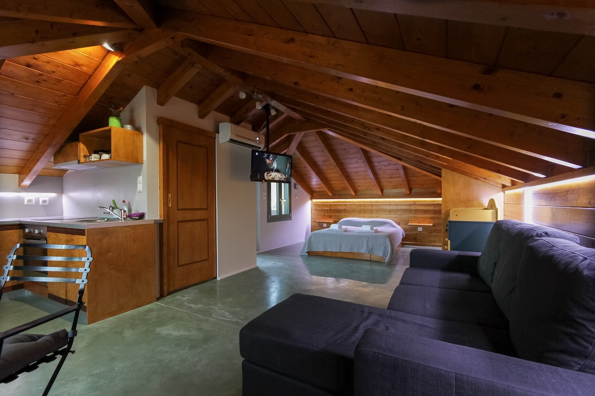 Located in a historic building in the centre of Gythio, this recently renovated loft apartment has been decorated in a country minimalist style. Extra attention has been taken to choose comfortable mattresses, pillows and bed linen. It is bright, spacious and air conditioned, and it’s just steps away from grocery stores, restaurants, pharmacies, playgrounds, bus stops and Githio’s romantic boardwalk. Let this clean, comfortable apartment be your home base in beautiful Githio!