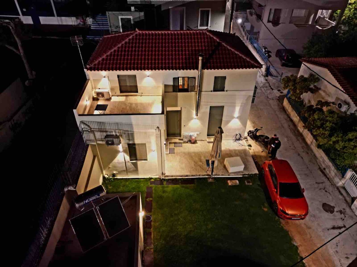 I'm standing peacefully on a hilltop at a short distance from the sea and watching over this realm named Messinian Bay. I can see the mountains, light blue waters and an ocean of stars. Come find me! I can make you feel comfortable and safe. I'm a fully equipped house with all the necessary. My location can offer you easy access to all the essential services and loads of outdoor activities.