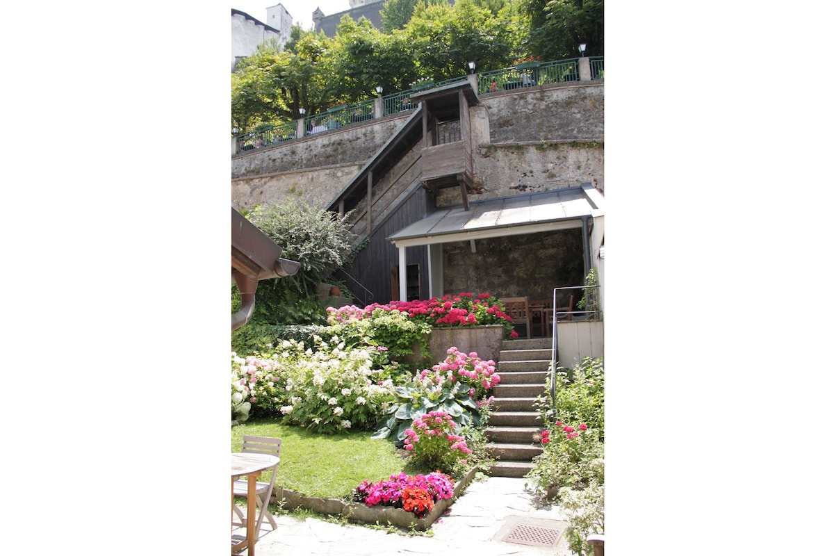 Apartment in a 19th century house, for 1- 4 in the old center beneath the castle/ monastry (sound of music), very calm, clean and cosy, ten minutes walk to the Mozartplatz, 15 minutes by bus from the trainstation. For our guests with toddlers/small children we are very happy to offer a Thule Sport 2 carriage for lend (10 euros/day). This way you can explore Salzburg by foot also with small children!