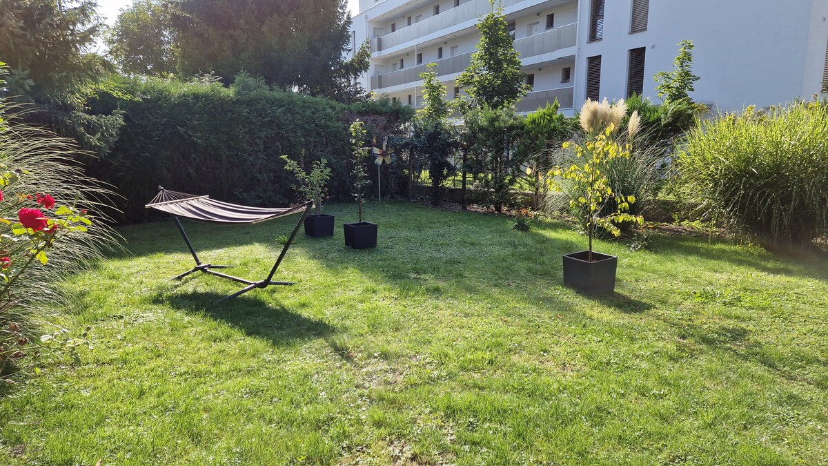 带露台和共用花园的公寓