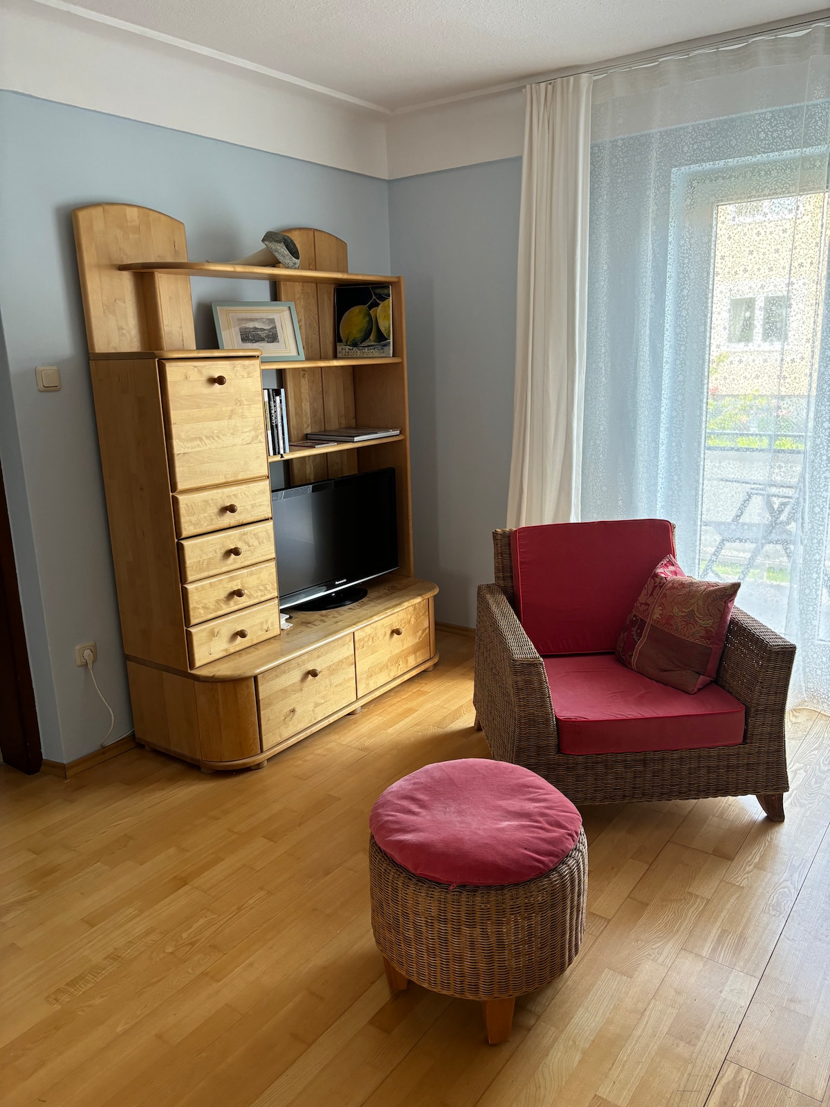 Small but cozy appartement (190sqft) with seperate entrance, 1 room, small cooking area, fridge, bathroom and small terrace. If you travel by car, please tell us in advance. Good bus connection to old city. Tourism tax of € 3,55 to be paid in cash at location.