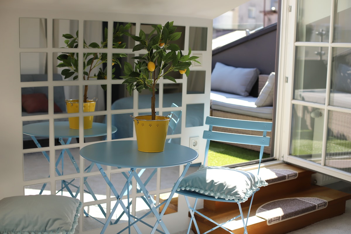 Discover the charm and history when you stay in this romantic Spot. With an ideal location near the city's top sights, this comfortable and elegant studio apartment has an indulgent interior and dreamy views from the terrace and the window.
