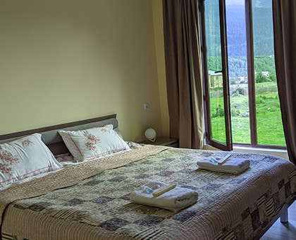 Our property is located near the city center, you need only 10 minutes by walk. In addition, the Guest House is located in the area where majority of Svanetian Towers can be observed. At the end of street there is Museum of exceptional Mountaineer/ climber Mikhael Xergiani. There is a beauteful forest behind our guesthouse, old Towers and amazing Nature. Our street is quiet what makes your rest comfortable. Also we can serve by car and make tours around the city. We can provide by food for tours