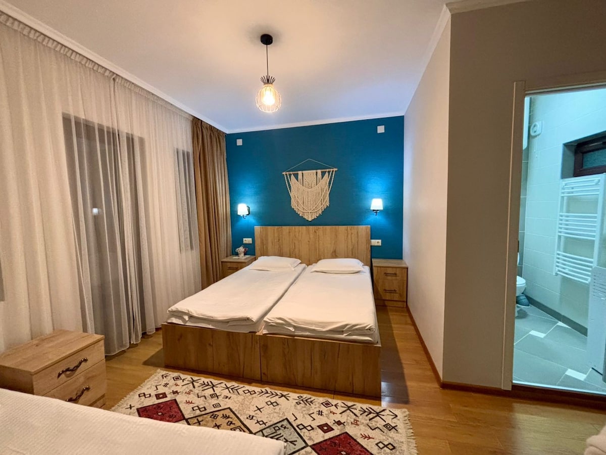 View, view, and view! Enjoy one of the most breathtaking views in all of Hatsvali, Mestia. The place is private and peaceful, yet only 50 meters from the Hatsvali ski lift. Wake up to the sounds of squirrels, maybe spot a fox, and admire the majestic twin peaks of Ushba. The area is regularly treated for insects, but as it’s surrounded by pristine forest, you may occasionally notice a fly or small bug — part of the true mountain experience.