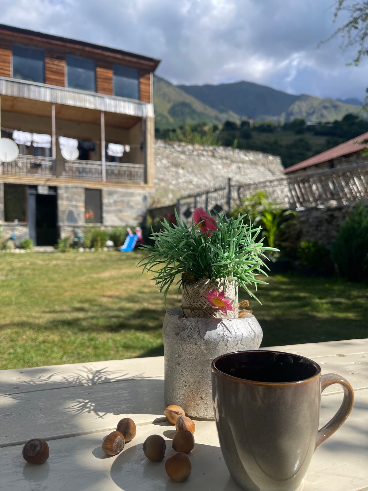 Enjoy easy access to everything. Second-floor Georgian house, freshly renovated and excellent. Huge private balcony offering amazing views of the town and the mountains. The place is in the center of the city and on the main road.