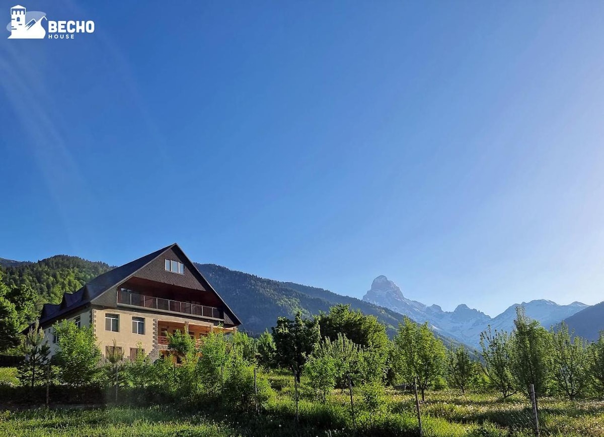 Отель расположен на берегу реки. Из комнат открываются красивые пейзажи на горы и сванские башни. На первом этаже находится кафе-бар и кухня, а на втором и третьем номера, всего их десять, 5 двухместных и 5 трёхместных. Отель оборудован системой центрального отопления, с водяным контуром. До всех достопримечательностей, Вы спокойно можете добраться пешком, они на расстоянии одного километра.