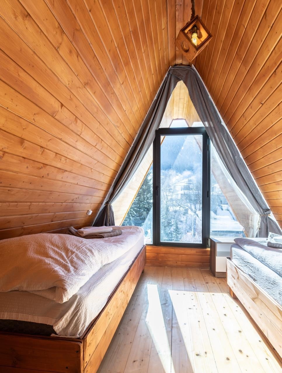 带玻璃屋顶的木屋,可欣赏乌什巴山景