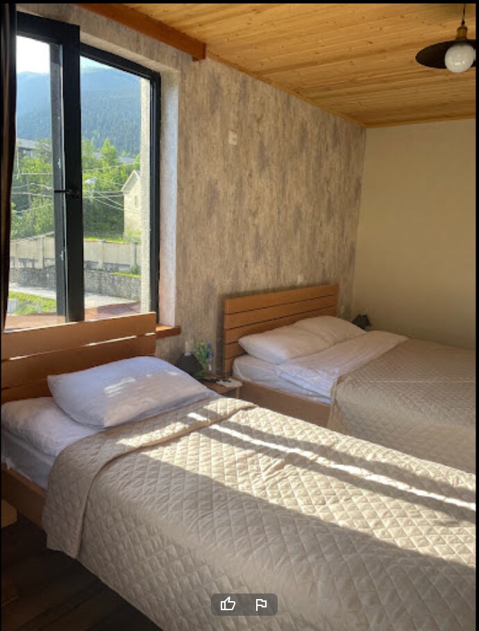 Cottage "Woodside" is located in 300 meters from Mestia center and 800 meters from Mestia - Hatsvali ski lift, next to the forest. You will enjoy the wonderful environment and an amazing sight of Svanetian Towers from the cottage. We are ready to host you any season of year. P.S when you are renting this listing, you are renting second floor of the cottage, not whole cottage, because on the first floor living me and I am not in touch with guests, because there are isolated entrance.
