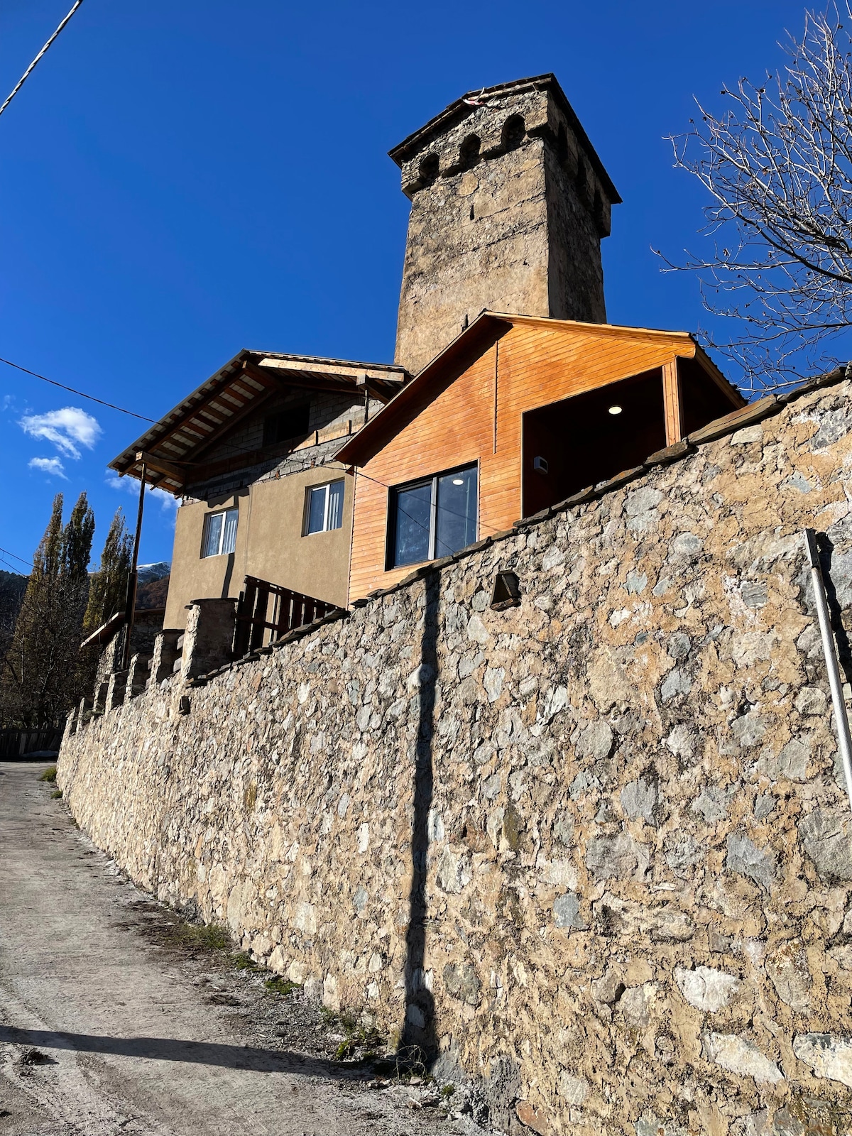 Located just a few steps away from the center of Mestia, on a quiet street, our charming cottage is a perfect getaway for nature lovers, adventure enthusiasts, and those seeking a romantic setting. Nestled under the shadow of the historical Svanetian tower, the cottage boasts a private garden and offers stunning 360° views of the snow-covered mountains of Tetnuldi, Banguriani, and Laila from its wooden terrace. Here, in Lavdila, we stand in solidarity with our sisters and brothers in Ukraine.
