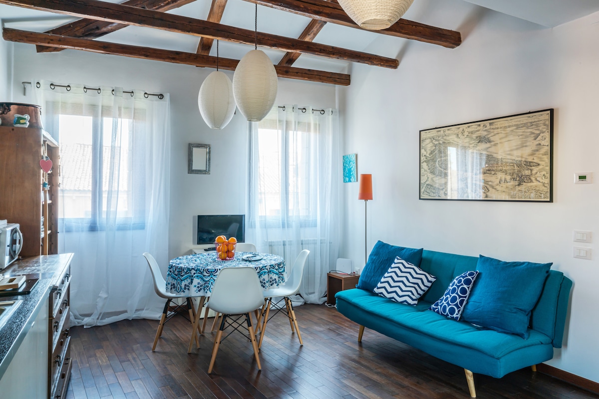 Rbnb Corona virus cleaning protocol here The Doge’s Hideaway is a bright, charming and tastefully furnished elegant apartment in the heart of Venice. The stylish apartment is 70 square meters and can comfortably accommodate up to 4 guests Il Nascondiglio del Doge è appartamento luminoso e bello nel cuore di Venezia. E stato arredato con gusto e eleganza. L'appartamento è di 70 metri quadrati e può ospitare comodamente 4 ospiti.