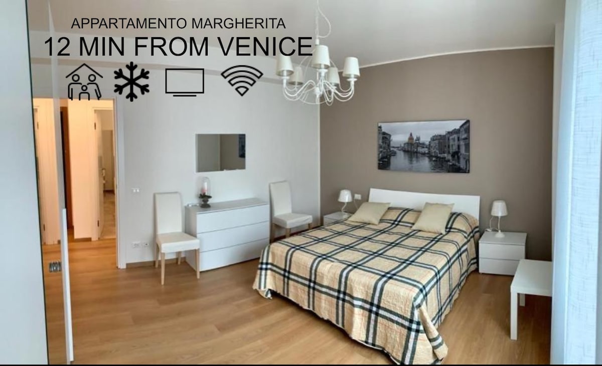 Alloggia in un pulito, elegante, luminoso e spazioso appartamento di 100 mq ,comodo ad ogni servizio, CON ASCENSORE, terrazzo per ogni tramonto e Posto Auto GRATUITO al COPERTO in garage PRIVATO, per avere zero pensieri, tutto a 8 Minuti dal centro di Venezia! Tramite treno (1 sola fermata) direttamente a 300 metri sotto casa! 25 min. Dall’aeroporto con navetta dalla stazione sotto casa. 35 min da Padova/ 1.25h da Verona / 35min da Treviso. In vicinanza supermercato,farmacie e ristoranti.