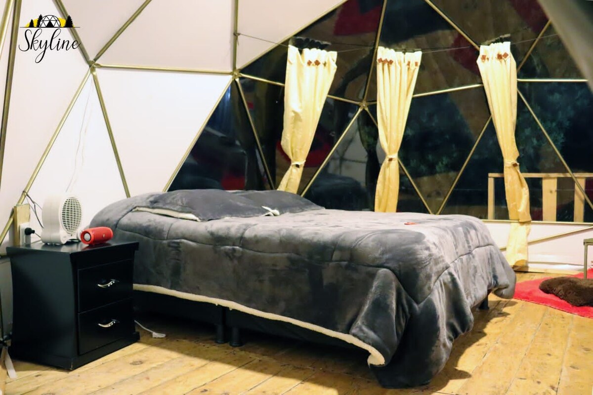 Conecta con la naturaleza en esta escapada inolvidable. Tenemos un lugar especial, cerca a Bogotá, en las montañas de La Calera. Un lugar tranquilo y cómodo donde escucharas la tranqulidad de la noche y los pajaros en la mañana. Estarás en un lugar hecho en madera y en medio de un bosque de reserva forestal, por lo cual esta *prohibido* prender cualquier tipo de elementos de combustión que pongan en riesgo el domo y el bosque, tales como fogata, cigarrillo, velas, entre otros.
