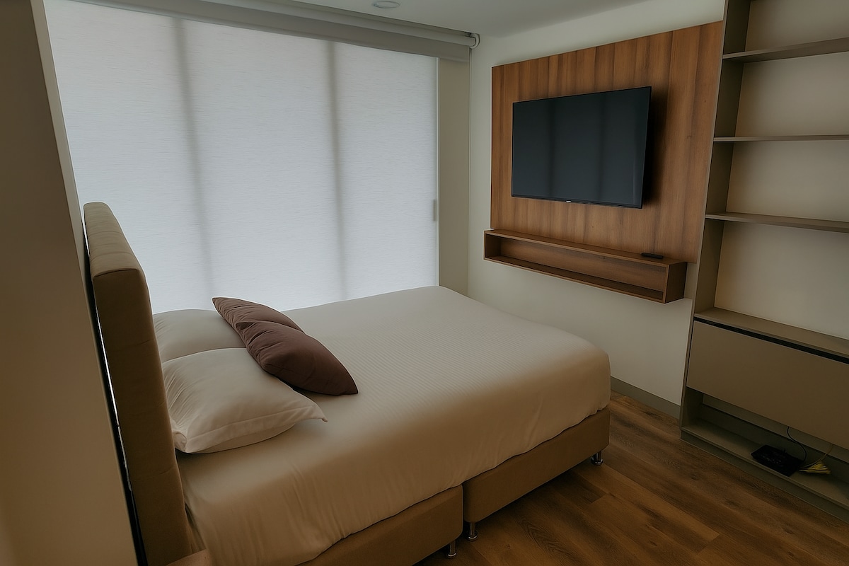 🏙️ Listing Description Experience Bogotá from a modern executive loft in the heart of Chicó Norte. Designed for comfort and productivity, this stylish space offers urban views, smart amenities, and prime access to the city’s most dynamic business and leisure hubs—including Parque de la 93, Zona T, and Museo del Chicó. Whether you’re working remotely or exploring the capital, this location delivers a seamless balance between convenience and sophistication.