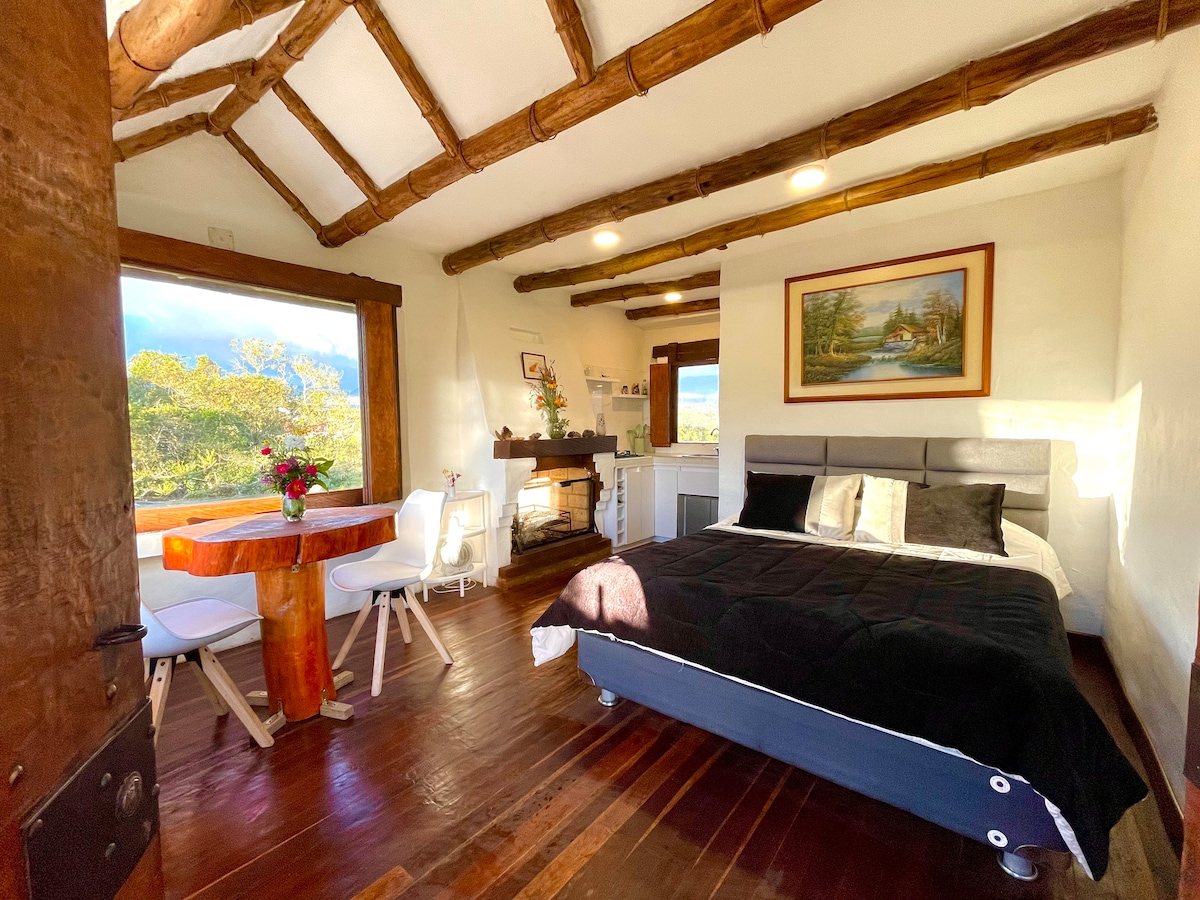 SUPER PROMO - MARZO Y ABRIL Hermosa cabaña con vista de ensueño y chimenea de leña. En medio de la naturaleza, ducha caliente, baño privado, bosque de páramo, con frailejón y quebrada subterránea, cultivo de agraz, vista al valle de Guasca y cervecería artesanal con tour cervecero. Deléitate cocinando o programa una deliciosa pizza, y/o desayunos campesinos, los llevamos a tu cabaña. NO PIERDAS LA SÚPER PROMO ¡SOMOS PET FRIENDLY!