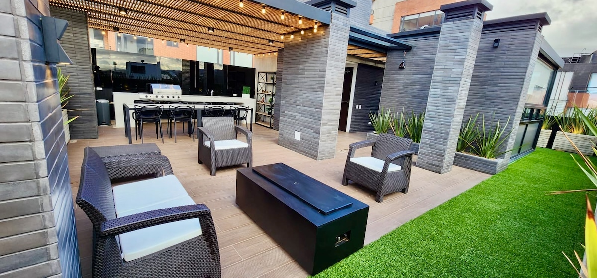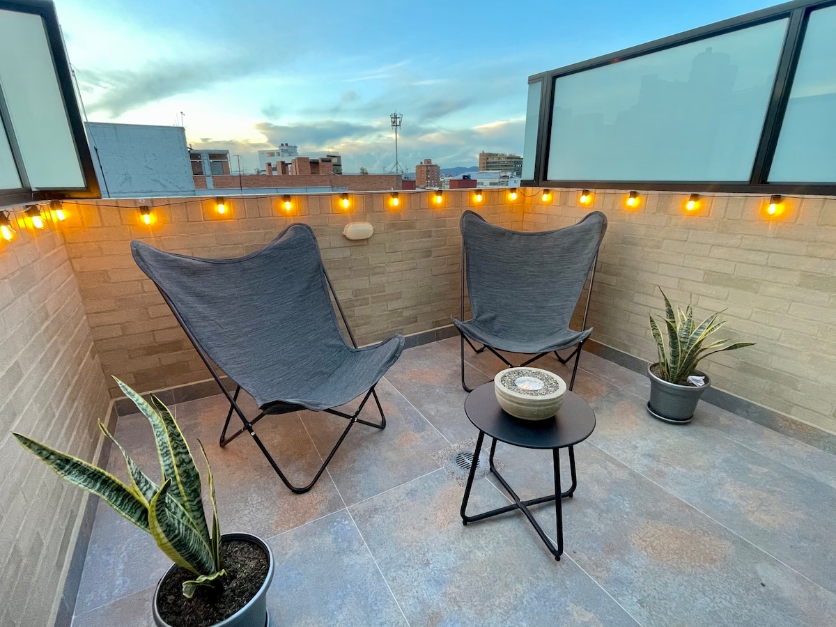 Live Bogota in this Luxury, new hotel-style ! This 2 Bedroom+ 2 Bathrooms+1 sofaBed+ private Jacuzzi Spa with 65” tv in the spa + epson laser projector CINEMA! centrally located in the prime area Chico , short walk from restaurants and shops. Located within 1 mile to park 93, this 5*Hotel-Style Suite brings you to live Bogota the right way, work or play, decoration a unique design luxury apartment, great vibe with a 190sqft private terrace! Just for you! Fiber Wi-Fi and 1 parking are included.