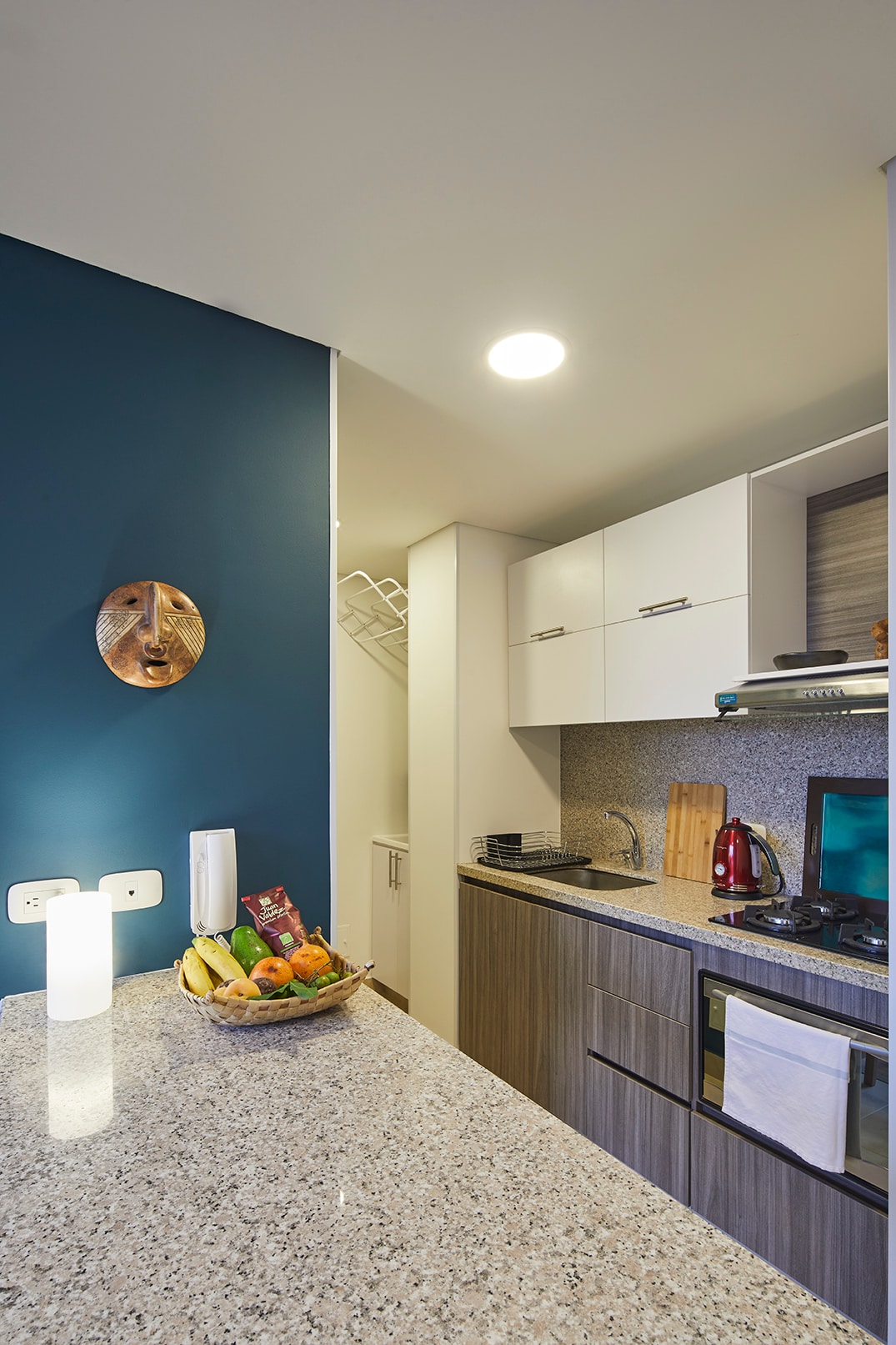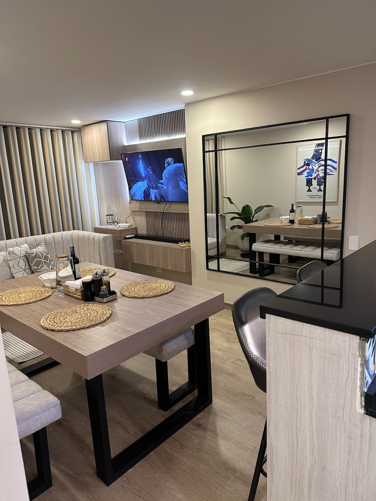 A stylish brand new place to stay perfectly comfortable for a short or long period of time. It has clearly everything you might need for having a unique and unforgettable experience overlooking the beautiful mountains and view of Bogota during the day and night. A great queen size bed, a sofa-bed, excellent bathroom, and for those that likes cooking, it has all sort of gadgets for facilitating so.Nearby you will find the best clubs such Theatron, among many others, grt-bars and shopping spots.