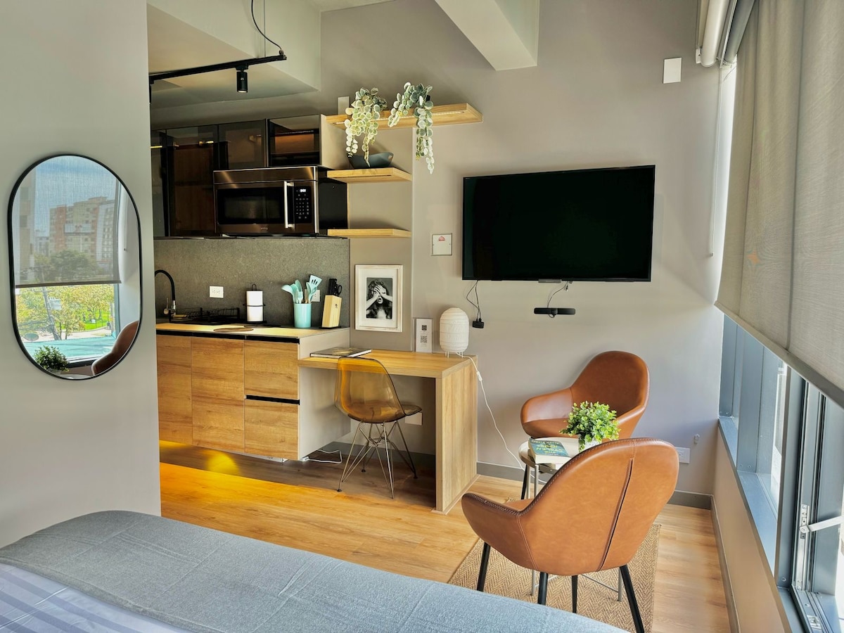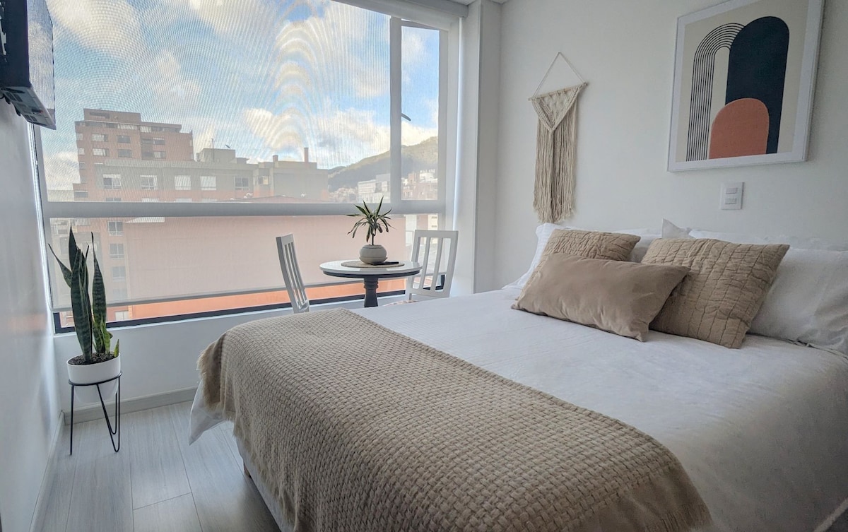 Recently renovated charming Studio. This place is strategically located: close to markets, museums, San Martin Mall, Monserrate, La Candelaria, La Plaza del Perseverancia, la Calle Bonita, National Park International Center (Financial zone), and countless restaurants, bars, and cultural activities that will make your visit to the city, an unforgettable experience. The building has a gym, coworking, pool area, and BBQ terrace on the top floor 360 View.